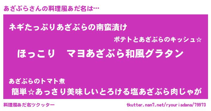 | 男性向けラノベタイトル風あだ名 | 『この素晴らしい世界にあざぶらを!』 |