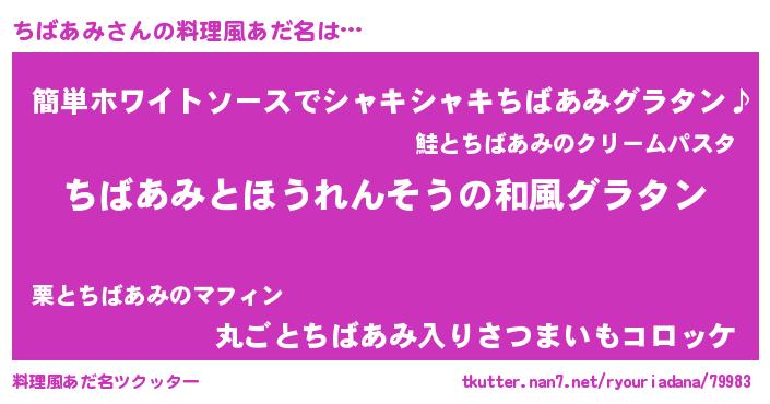 | 可愛いあだ名 | 『ちばぷりん』『ちっばぃー』 |