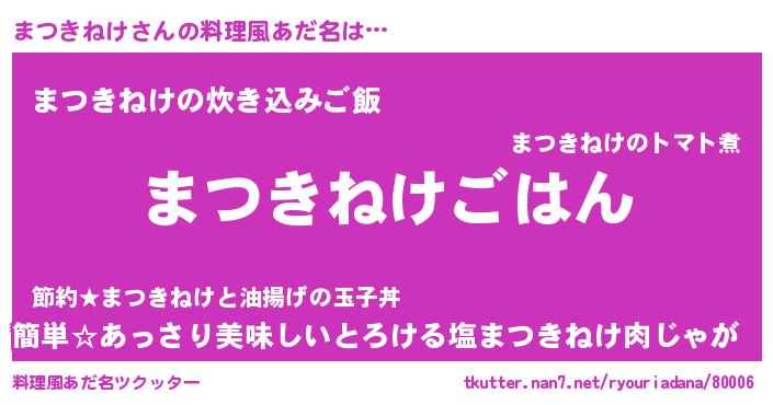 | 胡散臭い通販商品みたいなあだ名 | 『絶対に幸福をもたらす招き猫…その名も「まつきねけ」』 |