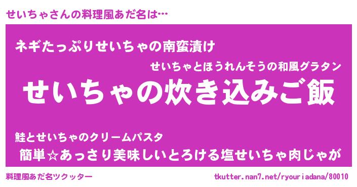 | 胡散臭い通販商品みたいなあだ名 | 『億万長者になれる霊験あらたかなお札…その名も「せいちゃ」』 |