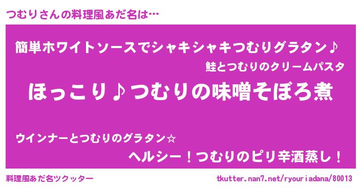 | ヘコむあだ名 | 『つむにゅー』『つむっぺ』 |