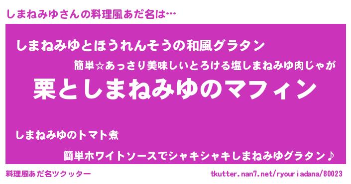 | 胡散臭い通販商品みたいなあだ名 | 『信頼と実績のネックレス…その名も「しまねみゆ」』 |