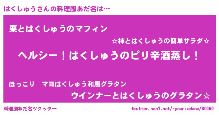 | 意味不明あだ名 | 『自称はくしゅう』『永久保存はくしゅう』 |