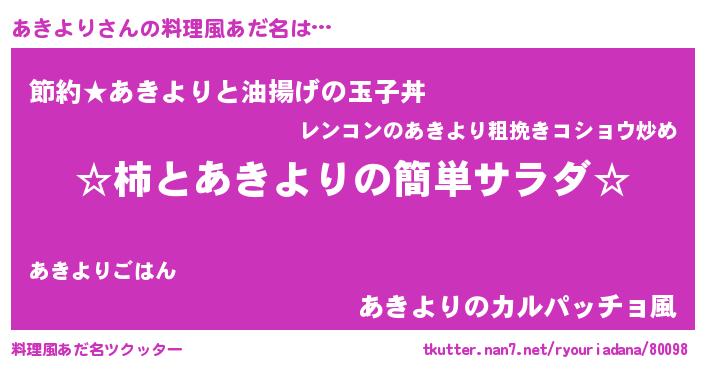 | ヘコむあだ名 | 『あきにゅー』『あきより(震え声)』 |
