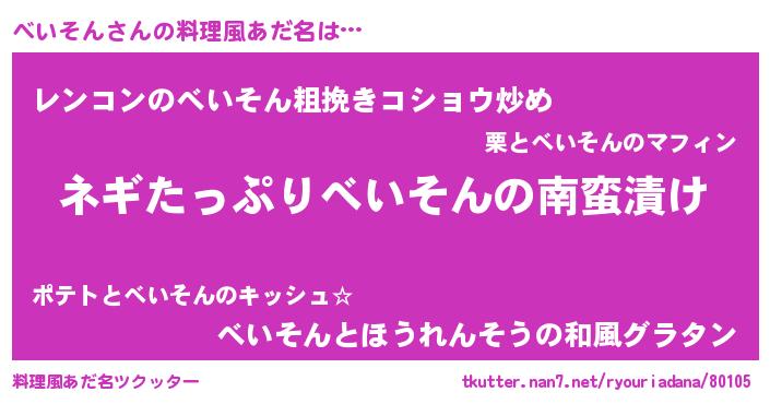 | 意味不明あだ名 | 『ペロリンべいそん』『自称べいそん』 |