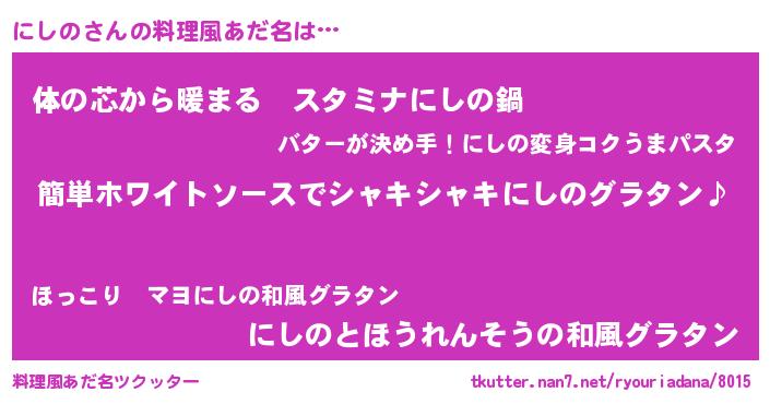 | 女子向けラノベタイトル風あだ名 | 『にしの様がみてる』『にしの恋絵巻』 |