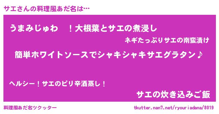 | ピコ太郎風あだ名 | 『サエ二郎』『ピサ二郎』『サコ一郎』 |