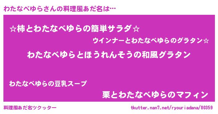| ヘコむあだ名 | 『なまこ酢』『わたを』『わたにゅー』 |