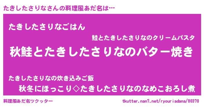 | ヘコむあだ名 | 『たきしたさりな(笑)』『たきもー』 |