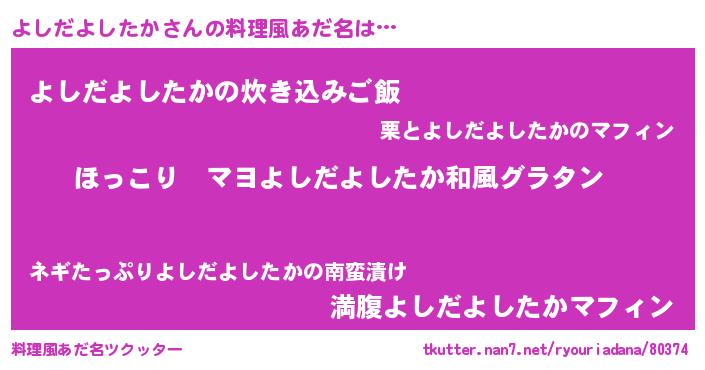 | ヘコむあだ名 | 『よしだよしたか(小並感)』『よしっふぃ~』 |