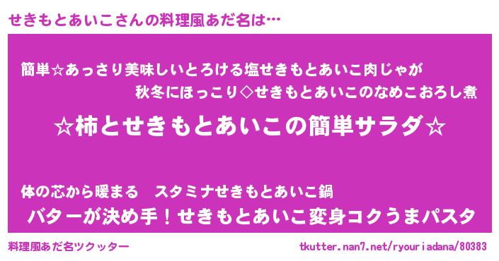 | 意味不明あだ名 | 『永久保存せきもとあいこ』 |