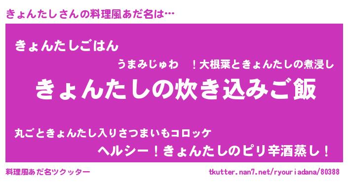 | ヒーロー風カッコイイあだ名 | 『究極戦士キョンタシ』『仮面キョダー』 |