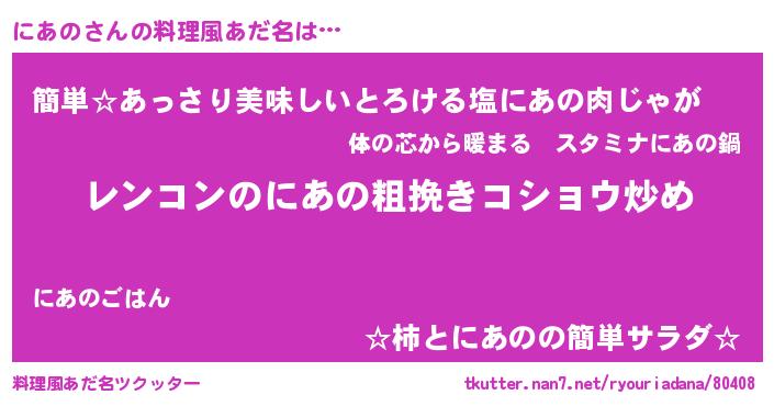 | ヘコむあだ名 | 『にあの(小並感)』『豆乳』 |