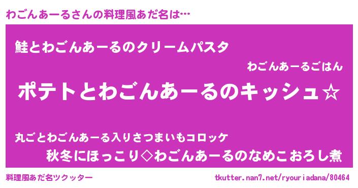 | 女子向けラノベタイトル風あだ名 | 『わごんあーるの卵を拾いまして』 |