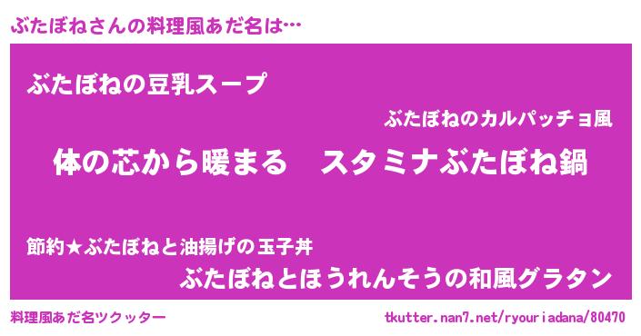 | ポケモン風あだ名 | 『ブタボダネ』『ヒブタボネ』 |