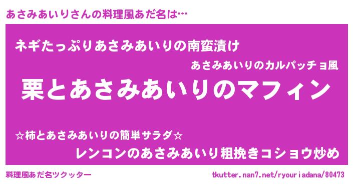 | 恥ずかしいあだ名 | 『プリティーあさみあいり』『あさちん』 |