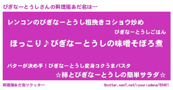 | ヘコむあだ名 | 『びぎもー』『びぎを』『つくし』 |
