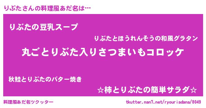 | 男性向けラノベタイトル風あだ名 | 『この素晴らしい世界にりぶたを!』 |