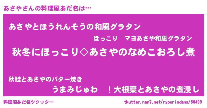 | 意味不明あだ名 | 『つくし科あさや属』『永久保存あさや』 |
