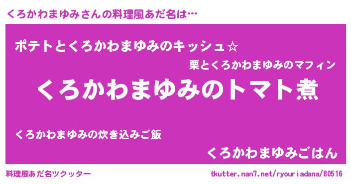 | ヘコむあだ名 | 『くろっぺ』『くろかわまゆみ(笑)』 |