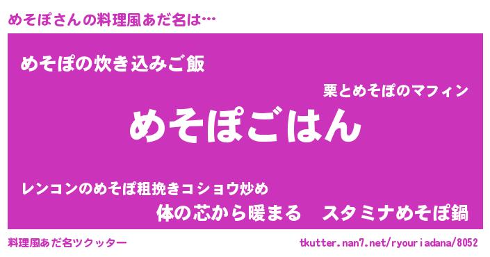 | 意味不明あだ名 | 『エリンギ科めそぽ属』『自称めそぽ』 |