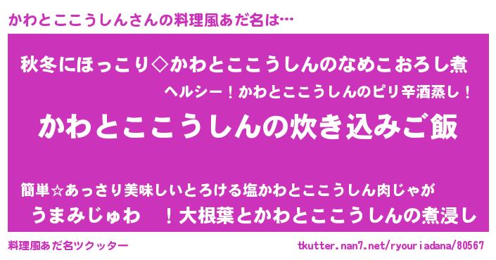 | 意味不明あだ名 | 『かわとここうしんフォーエバー』 |