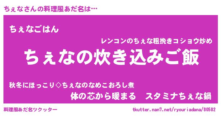 | 胡散臭い通販商品みたいなあだ名 | 『運命の人と巡り会える高級そうな皿…その名も「ちぇな」』 |