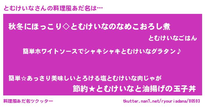 | ポケモン風あだ名 | 『ヒトムケイナ』『トムゴンZ』 |