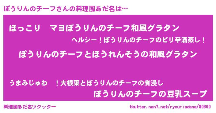 | 欧米人風あだ名 | 『トリンドルぽうりんのチーフ』 |