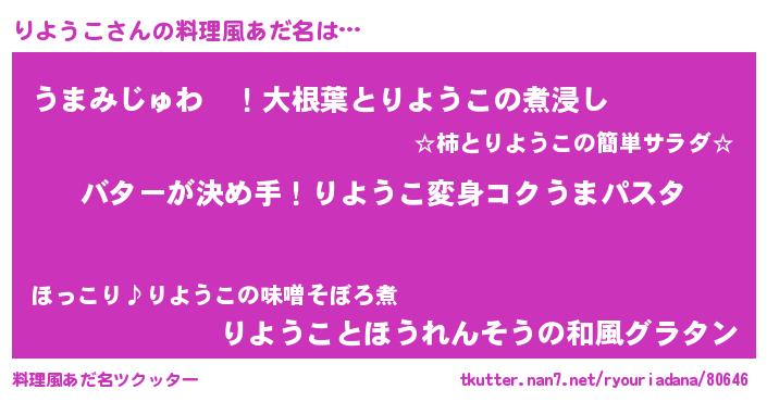 | 女子向けラノベタイトル風あだ名 | 『りようこ恋絵巻』『りようこの婚約者』 |
