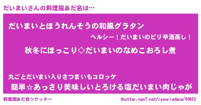 | 意味不明あだ名 | 『なめこ科だいまい属』『自称だいまい』 |