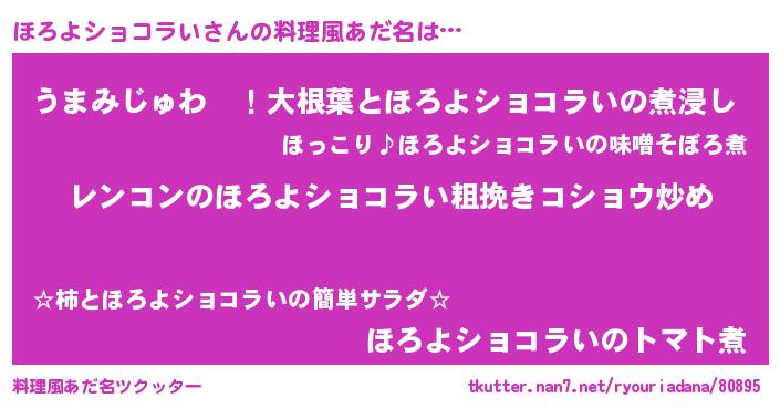 | 意味不明あだ名 | 『自称ほろよショコラい』 |