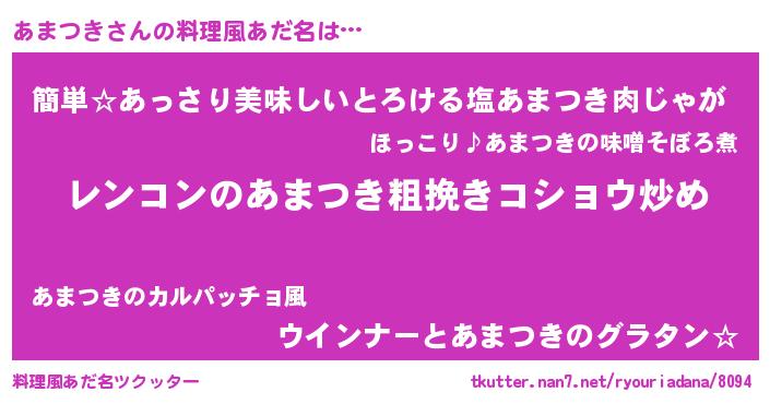 | 意味不明あだ名 | 『自称あまつき』『永久保存あまつき』 |