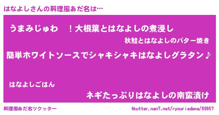 | ポケモン風あだ名 | 『ヒハナヨシ』『ハナヨダネ』 |