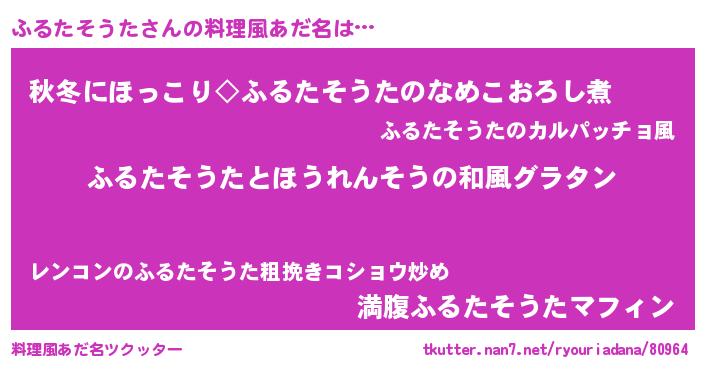 | 女子向けラノベタイトル風あだ名 | 『ふるたそうたの玉の輿計画!』 |