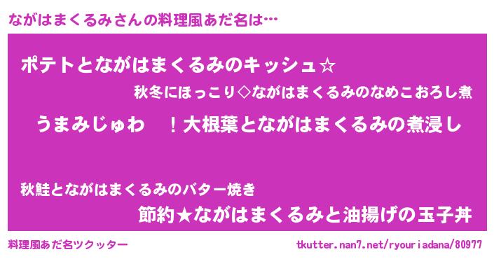 | 欧米人風あだ名 | 『ながはまくるみクリステル』 |
