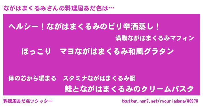 | 意味不明あだ名 | 『住所不定無職ながはまくるみ(53歳)』 |