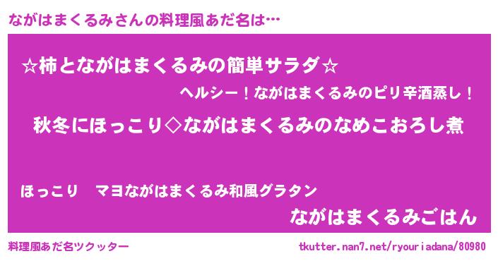 | 男性向けラノベタイトル風あだ名 | 『ながはまくるみに滅ぼされるだけの簡単なお仕事です』 |