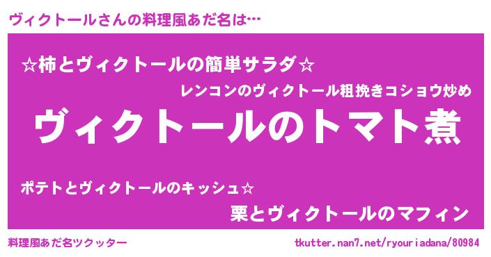 | 男性向けラノベタイトル風あだ名 | 『おまえをオタクにしてやるから、俺をヴィクトールにしてくれ! 』 |
