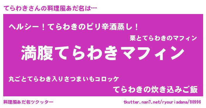 | 可愛いあだ名 | 『てらわきママ』『てらうちぇる』 |