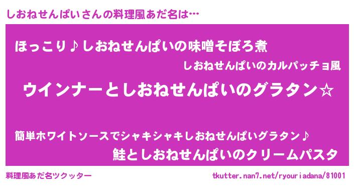 | 欧米人風あだ名 | 『しおねせんぱいクリステル』 |