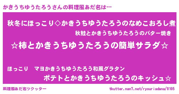 | ヘコむあだ名 | 『かきぷりん』『かきうちゆうたろう(笑)』 |