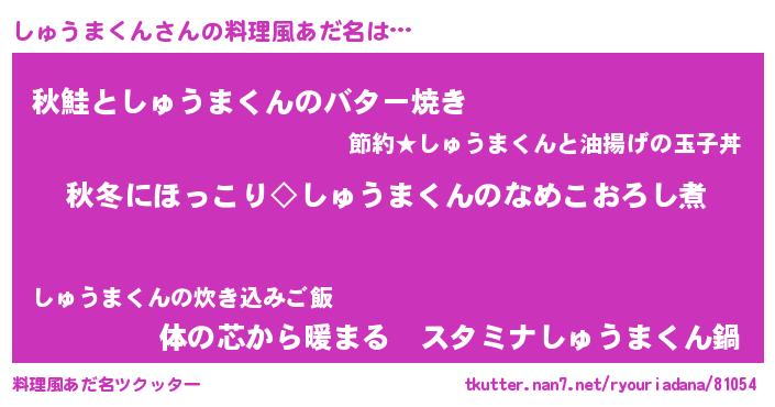| 男性向けラノベタイトル風あだ名 | 『しゅうまくんに滅ぼされるだけの簡単なお仕事です』 |