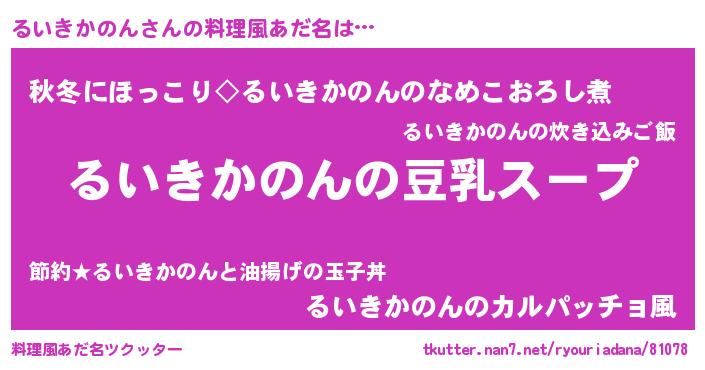 | 胡散臭い通販商品みたいなあだ名 | 『信頼と実績のサプリメント…その名も「るいきかのん」』 |