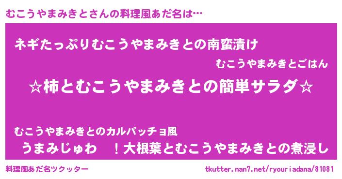 | ヘコむあだ名 | 『むこにー』『レバニラ』『むこっ子』 |