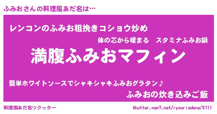 | 男性向けラノベタイトル風あだ名 | 『ふみおという概念が存在しない退屈な世界 』 |