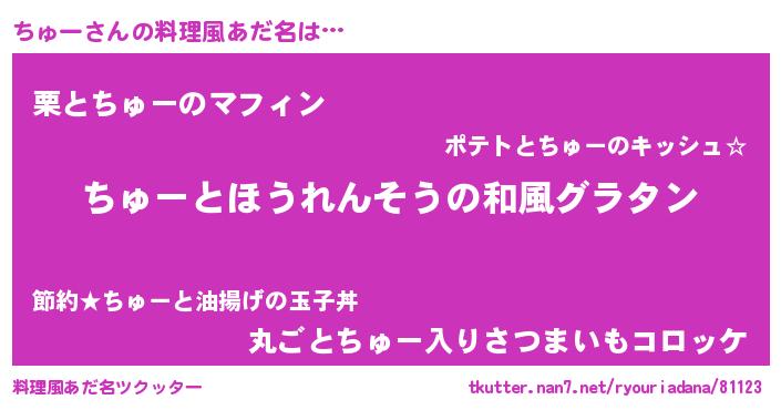 | ヒーロー風カッコイイあだ名 | 『仮面チュダー』『暗黒騎士チュ』 |