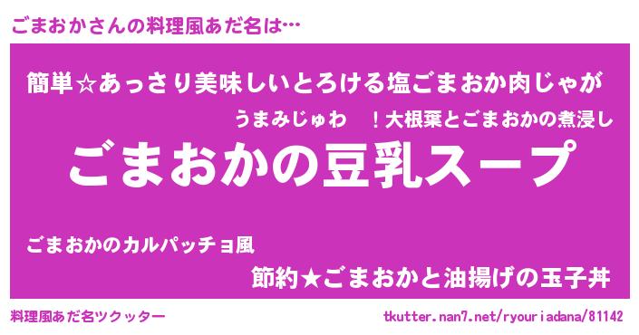| 男性向けラノベタイトル風あだ名 | 『ダンジョンにごまおかを求めるのは間違っているだろうか』 |