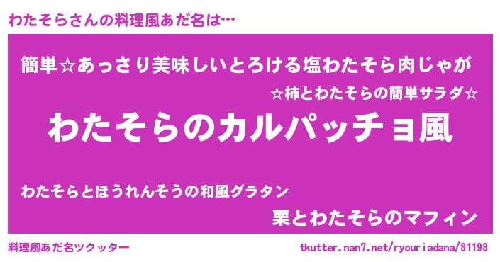 | ヒーロー風カッコイイあだ名 | 『仮面ワタダー』『ネオワタソラ』 |