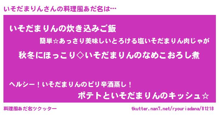 | 意味不明あだ名 | 『とにかく怪しいいそだまりん』 |